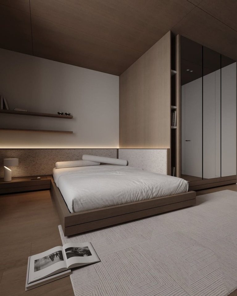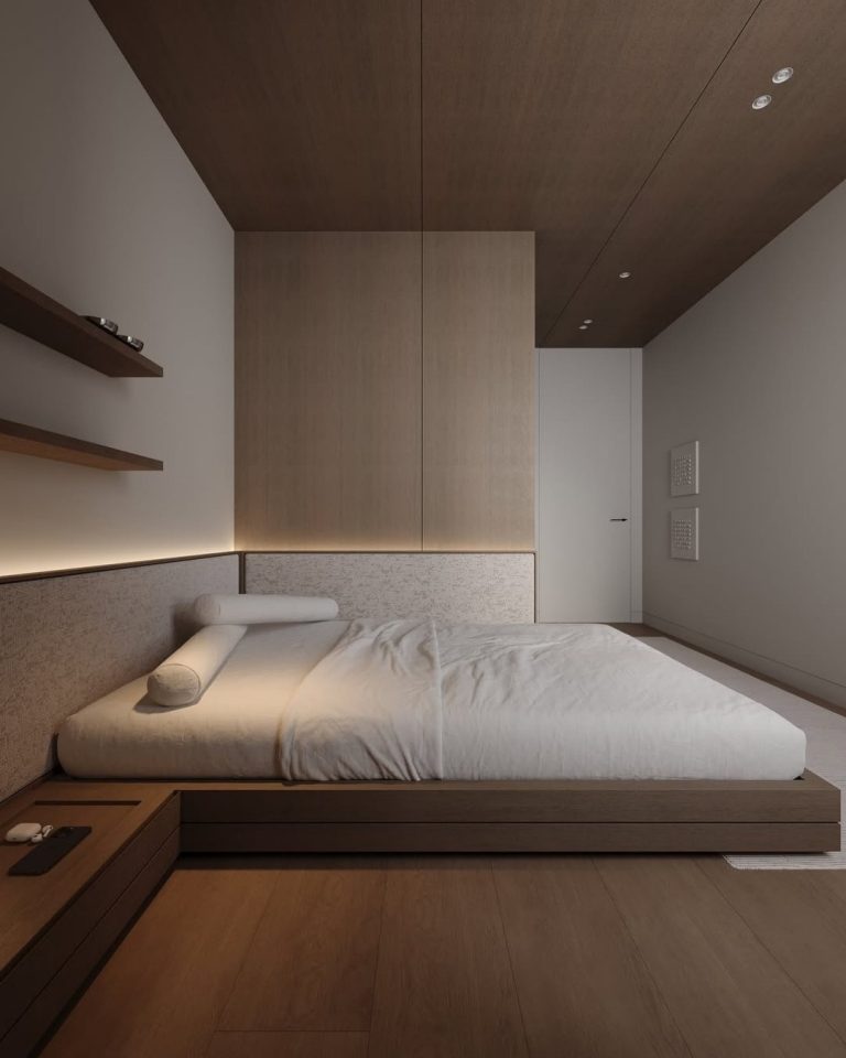 3. Krevat minimalist me platformë prej druri...